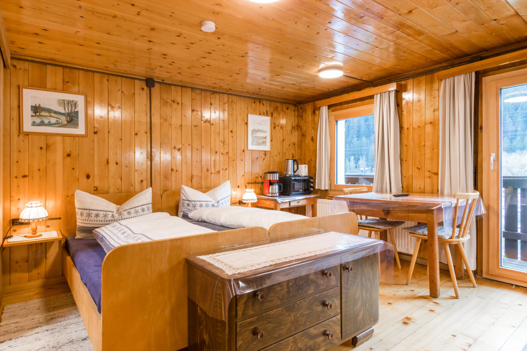 Overige uitrusting: theedoeken, tv, gratis wifi, haardroger. De kamer heeft een eigen badkamer/toilet en een klein balkon op het zuiden. Het huis heeft ook een skiruimte met skischoenverwarmers.